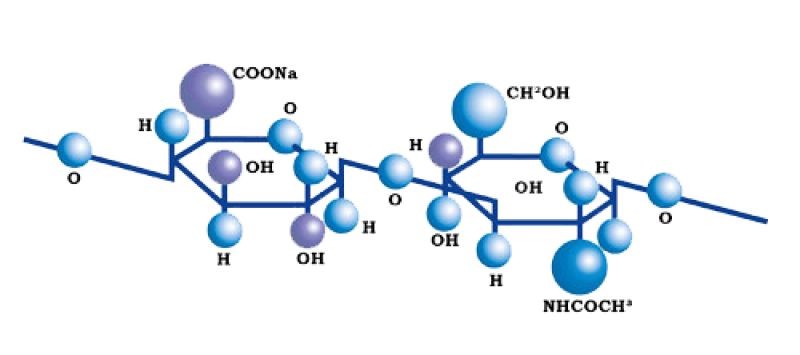 Гиалуроновая кислота представляет собой линейный полимер дисахаридных звеньев, соединенных между собой гликозидными мостиками. Основная функция гиалуроната натрия — удерживать воду, что обеспечивает увлажнение и эластичность кожи, а также нормальное скольжение тканей, предотвращая обезвоживание и стимулируя регенерацию клеток.